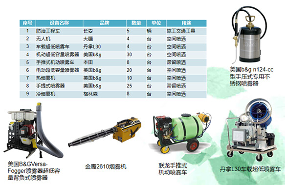 具有行業(yè)先進(jìn)的設(shè)備,美國B&GVersa-Fogger噴霧器超低容量背負(fù)式噴霧器30臺、電動超低容量噴霧器20臺、熱煙霧機(jī)10臺、手提式噴霧器25臺......